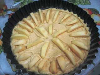 Em uma forma média (usei uma retangular de 30cm de comprimento pois o bolo é grande) untada e enfarinhada coloque a massa e por cima espalhe uniformemente o creme. Asse em forno a 180C por 35-40 minutos até corar.